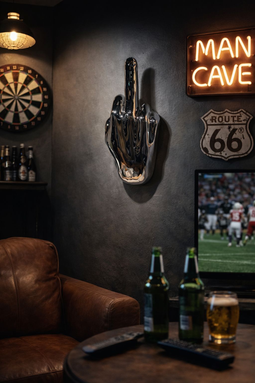Make a fearless statement with this silver wall-mounted hand sculpture featuring a prominently raised middle finger. Designed for those who embrace edgy style and unapologetic self-expression, this striking piece blends rebellious attitude with modern artistry. Whether displayed in a living room, entryway, office, or creative space, it instantly becomes a conversation-starting focal point.